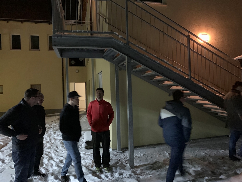 Nachdem den Mitgliedern der Gashaupthahn und der Zählerkasten gezeigt wurde, betrachtete man auch die neu zugebaute Fluchtstiege. Mit dieser Fluchtstiege steht dem Lehrpersonal und den Schülern nun neben dem Innenstiegenhaus ein weiterer Fluchtweg aus dem Obergeschoss zur Verfügung.