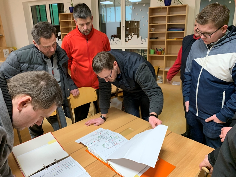 In den vergangenen Jahren wurde die Volksschule Göpfritz renoviert, aber auch ein Zubau wurde vorgenommen, aus diesen Gründen fand eine Begehung statt, um die Räumlichkeiten kennen zu lernen, damit sich im Ernstfall die Mitglieder besser orientieren können und dadurch effektiver gehandelt werden kann. In diesem Zusammenhang wurden auch die in der Feuerwehr Göpfritz/Wild vorhandenen Brandschutzpläne genauer unter die Lupe genommen.