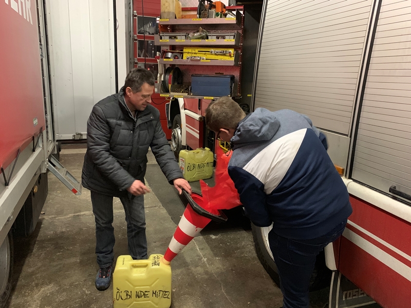 Nach der Begehung in der Volksschule galt es für die Mitglieder nach den Einsätzen der vergangenen Tage noch einige Geräte zu warten aber auch Verbrauchsmittel aufzufüllen.