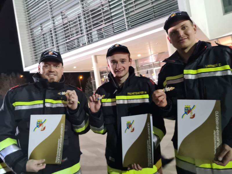 FM Bernhard Dangl, FM David Lintner und FM Marvin Palmetzhofer traten am Samstag, den 4. März 2023 zum Bewerb um das NÖ Feuerwehr-Funkleistungsabzeichen an.