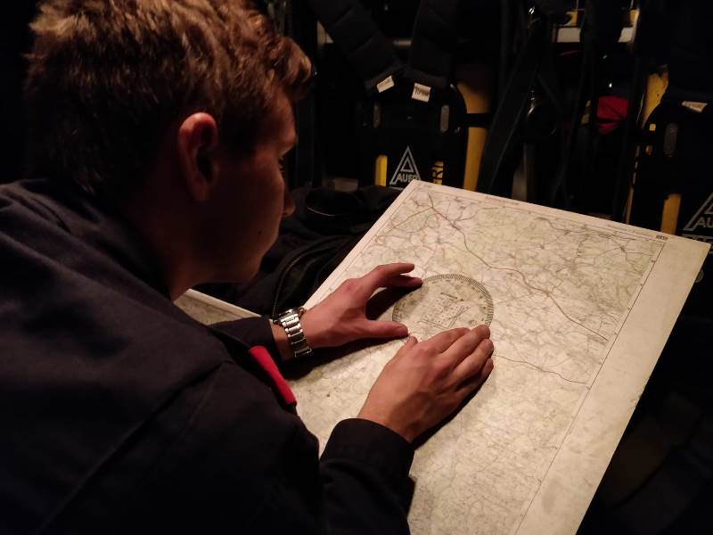 1. Aufgabe: Als sich die Mitglieder im Raum Neupölla befunden haben bekamen sie über das Funkgerät Koordinaten übermittelt, welche man auf einer Karte (ÖK-50) finden und anschließend den Punkt anfahren mussten.