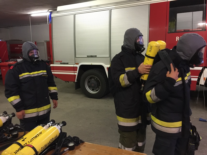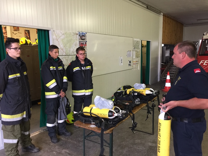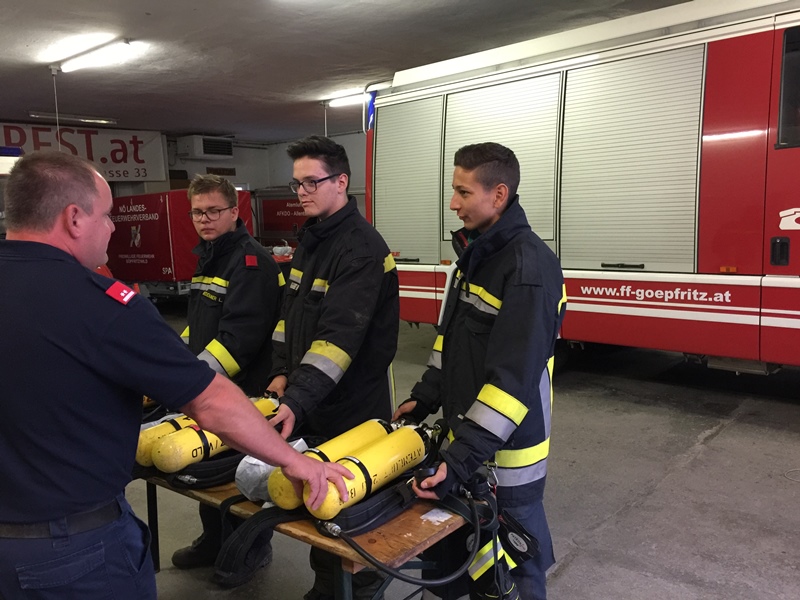 Am Anfang erklärten OLM Ronny Kuschal FM Michael Gutmann und FM Stefan Gutmann, den drei Mitgliedern, das Atemschutzgerät und dessen Anwendungsbereich. Anschließend führte man gemeinsam eine Kurzüberprüfung durch, wobei hierbei besonders darauf geachtet wurde, dass man das Gerät genau überprüft - um im Einsatz etwaige Komplikationen vermeiden zu können.