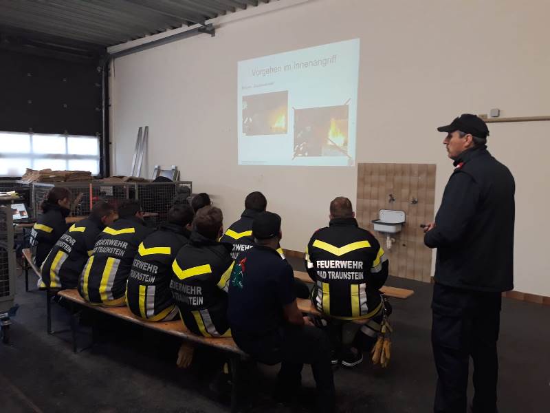 Ebenso wird bei dieser Ausbildung auf den richtigen Einsatz des Strahlrohres geachtet. Auch das richtige Öffnen von Türen ist ein wichtiger Bestandteil dieser Übung, da hier besonders gut die Konsequenzen die beim richtigen oder falschen Öffnen der Tür entstehen, zu sehen sind.