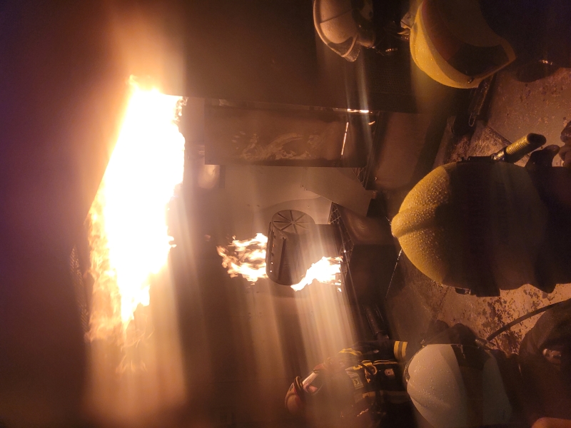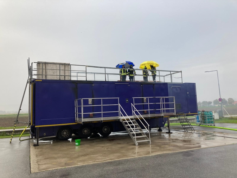 In diesem Container können unterschiedliche Szenarien nachgestellt und simuliert werden. So ging es neben dem Löschen von mehreren Brandherden auch um die Gewöhnung an die relativ hohen Temperaturen. Ebenso wird bei dieser Ausbildung auf den richtigen Einsatz des Strahlrohres geachtet.