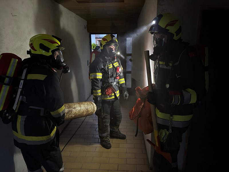 Atemschutzübung - Kellerbrand mit PersonensucheAtemschutzübung - Kellerbrand mit PersonensucheNachdem der erste Atemschutztrupp die Suche im verwinkelten Keller nach der ersten Person erfolgreich abschließen konnte und die gerette Person ins Freie gebracht wurde, begab sich der zweite Atemschutztrupp in den Keller und konnte die Personensuche weiterhin erfolgreich fortsetzen. Anschließend begab sich ein ATS Trupp nochmals ins Gebäude, weil noch eine Person vermisst war. Es wurde aber auch das richtige Verhalten im Innenangriff nämlich die Brandbekämpfung geübt.