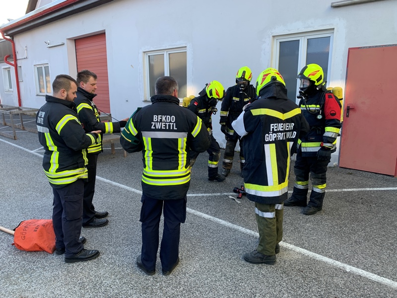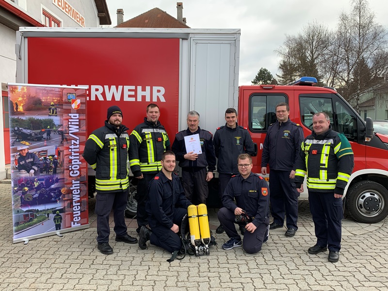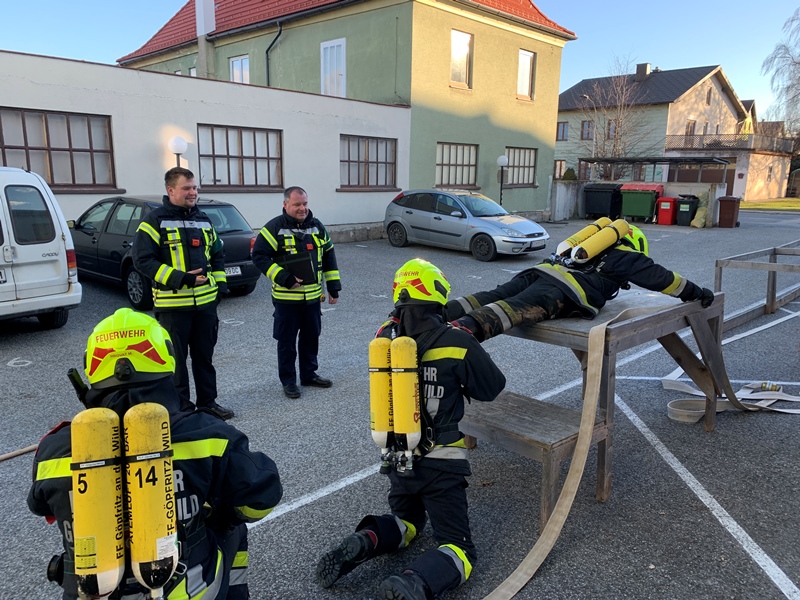 Göpfritz/Wild - Nach intensiven Vorbereitungen stellten sich am 6. Jänner 2022 zwei Gruppen der Feuerwehr Göpfritz/Wild dem Prüferteam unter Hauptprüfer BSB Ronny Kuschal der Ausbildungsprüfung "Atemschutz" in den Stufen Bronze, Silber und Gold.