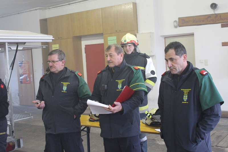 Abschnittsfeuerwehrkommandant BR Siegfried Ganser und Bgm. Franz Gressl konnten sich selbst über das Können der Mitglieder überzeugen und übergaben gemeinsam mit dem Bewerterteam den Mitgliedern das erworbene Abzeichen.