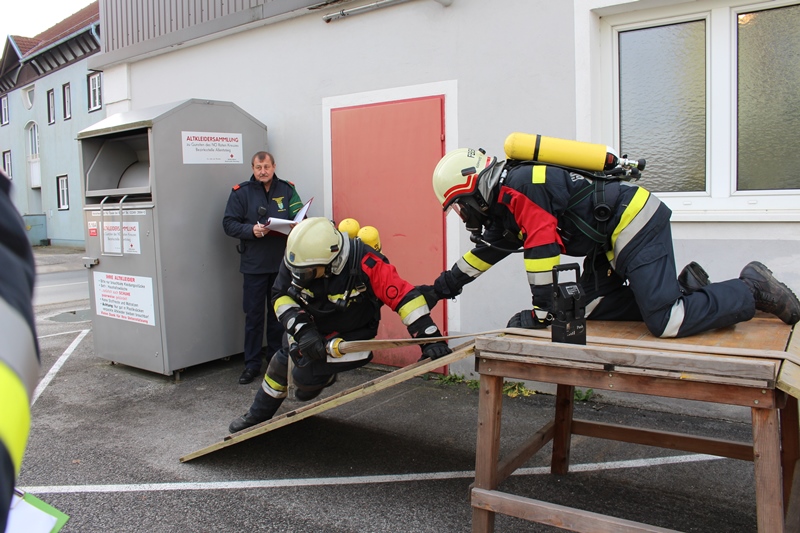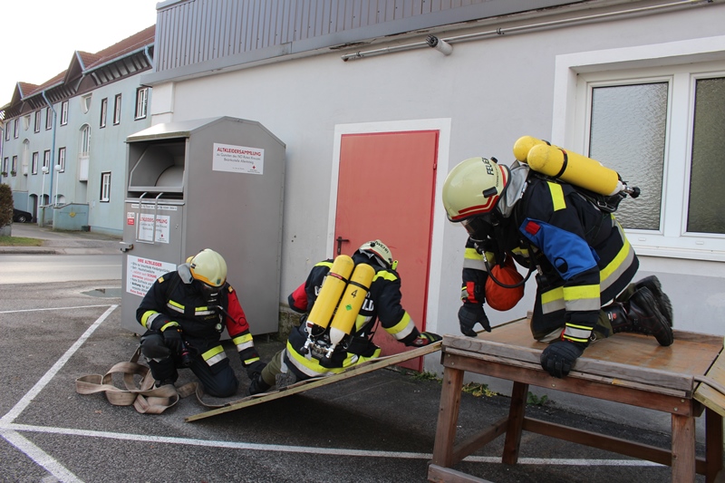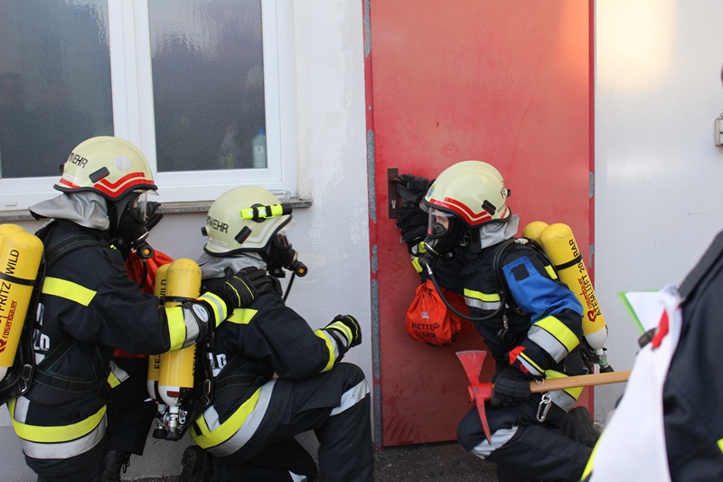 Bei der Ausbildungsprüfung "Atemschutz" wird nicht Wert auf schnelles Arbeiten gelegt sondern darauf, dass innerhalb des Trupps die Zusammenarbeit einwandfrei funktioniert. Ebenso wird besonders darauf geachtet, dass sich die Truppmitglieder richtig ausrüsten und sicher arbeiten.