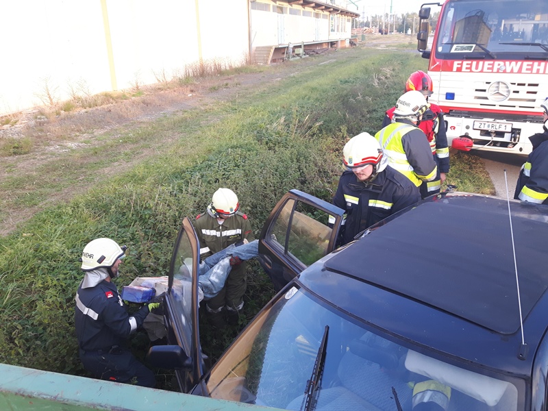 Bei dieser Staton wurde ein Verkehrsunfall zwischen einem PKW und einem Traktor mit Anhänger nachgestellt. Beim Verkehrsunfall wurden mehrere Personen verletzt (dargestellt durch die Feuerwehrjugend Göpfritz/Wild) bzw. konnten diese das Fahrzeug nicht mehr selbst verlassen.