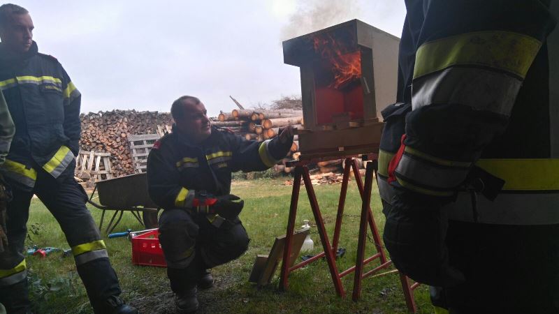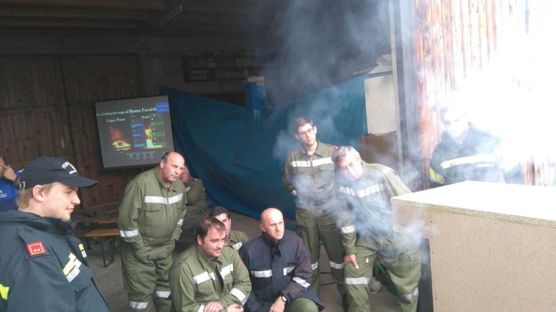 Diese Station teilte sich in zwei Teile. Zuerst erklärte Abschnittssachbearbeiter LM Ronny Kuschal mit seinem Team in einer kurzen Theorieeinheit, die zwei Szenarien Flashover und Backdraft. Anschließend begutachteten die Teilnehmer das zuvor Erlernte an einem Modell in der Praxis bzw. konnten sie auch die verschiedenen Vorzeichen dieser beiden Szenarien live miterleben.