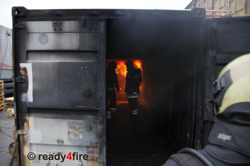 Nachdem die vier Container mit einem Ausbildner durchquert wurden, mussten die Teilnehmer im zweiten Durchgang bereits selbstständig die Personensuche und einen Löschangriff mit der Rauchgaskühlung durchführen.
