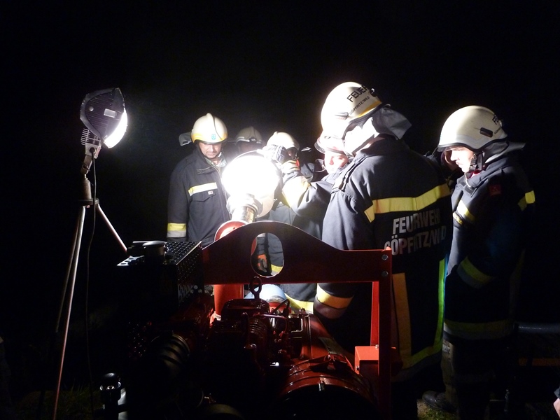 Göpfritz/Wild - Nach der Übergabe der Sonderpumpanlage SPA200 durch den Landesfeuerwehrverband an die Feuerwehr Göpfritz/Wild im Oktober 2014, wurde am Freitag, dem 07. November 2014, eine entsprechende Einschulung der Feuerwehrmitglieder durchgeführt.