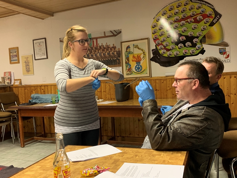 Im Bereich Selbstschutz besprach man Möglichkeiten, wie man sich am besten vor Krankheiten aber auch Gefahren schützen kann. Anschließend wurde ein fiktives, aber durchaus mögliches, Einsatzszenario vorgestellt bzw. wurde die dabei zu setzenden Maßnahmen besprochen - vor allem mögliche Gefahren, beginnend bei der Anfahrt zum Feuerwehrhaus nach der Alamierung bis hinzu den Aufräumungsarbeiten und der Wiederherstellung der Einsatzbereitschaft im Feuerwehrhaus.