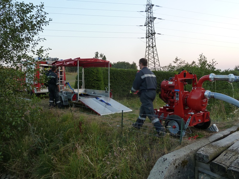 Dort angekommen, begann man damit die Pumpe aus dem Anhänger zu entladen und in weiterer Folge aufzubauen. Diesesmal versuchte man aber am Ende des A-Druckausganges den Wasserwerfer zu montieren.