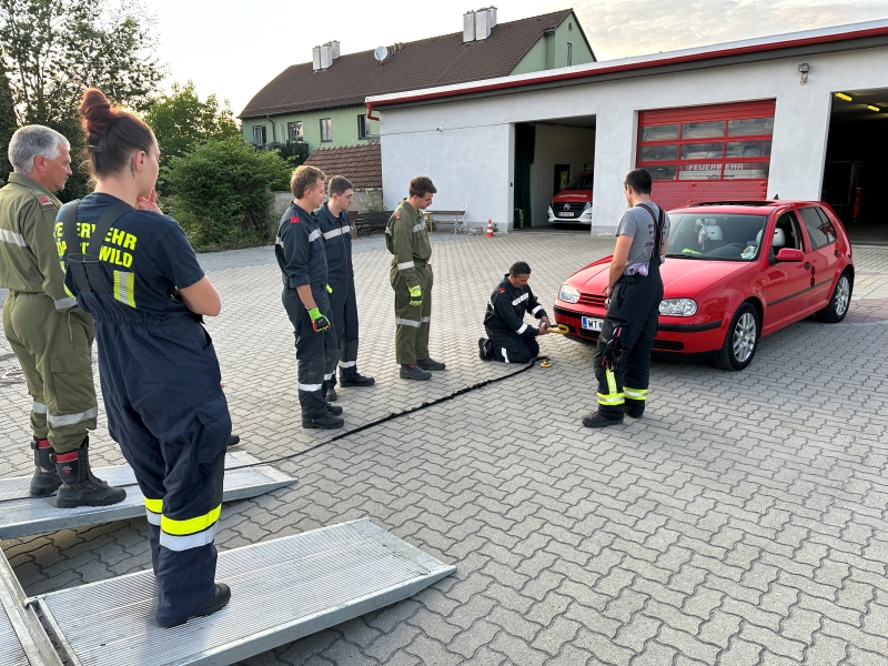 Göpfritz/Wild - Unter der Übungsleitung von LM Jürgen Hengst fand in den Abendstunden des 06. Juni 2025 eine technische Fortbildung mit dem Thema "Fahrzeugbergung und richtige Anwendung des Abschleppanhängers" bei der Feuerwehr Göpfritz/Wild statt.