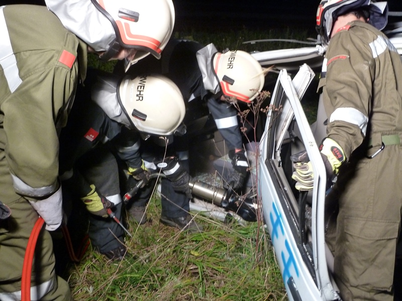 In weiterer Folge, konnten alle Übungsteilnehmer mehrmals mit dem hydraulischen Rettungsgerät arbeiten. Zwischen den Arbeiten erklärte LM Ronny Kuschal immer wieder einige Möglichkeiten, wie man arbeiten kann.