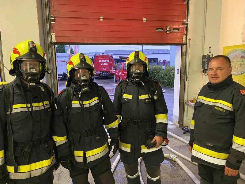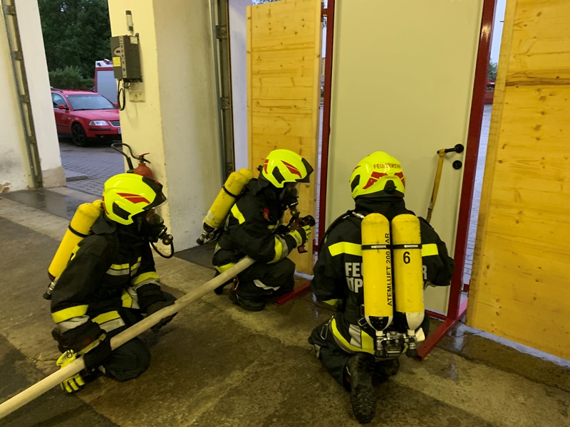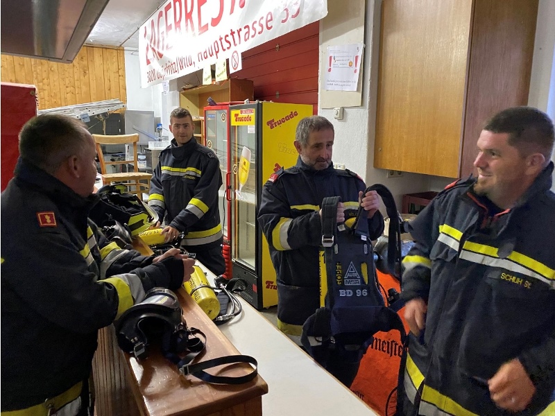 Bevor mit dem Statiosbetrieb begonnen werden konnte, rüsteten sich insgesamt drei Atemschutztrupps mit den vorhandenen Atemschutzgeräten aus, wobei dabei wiederum auf das rasche und sorgfältige Ausrüsten Bedacht genommen wurde.