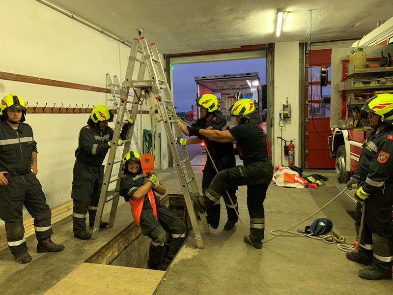 Göpfritz/Wild - Mehrere Mitglieder der Freiwilligen Feuerwehr Göpfritz/Wild nahmen am 2. Juli 2021 an einer Übung mit dem Schwerpunkt "Verwendung Steckleiter" teil.