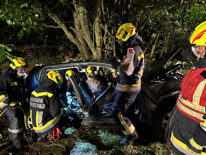 Technische Übung - Verkehrsunfall mit MenschenrettungGöpfritz/Wild - Unter der Übungsleitung von LM Bernhard Dangl und LM Michael Gutmann fand in den Abendstunden des 5. September 2025 eine technische Übung mit dem Thema Menschenrettung für die Mitglieder der Feuerwehren Göpfritz/Wild und Merkenbrechts statt.