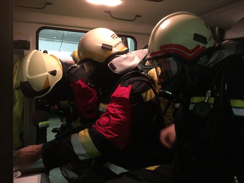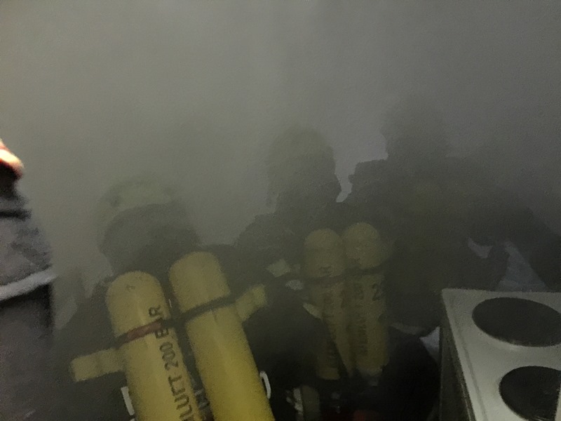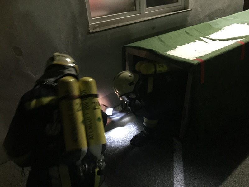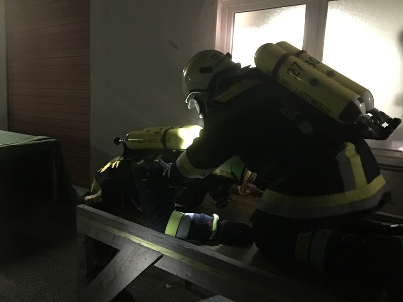 2. Station (Personensuche): In einem verrauchten Raum müssen die Trupps eine Person finden und diese mittels Notrettungsset retten. Außerdem werden in dem Raum Kanister, welche mit Gefahrennummer versehen sind, abgestellt welche der ATS-Trupp dem Gruppenkommandanten melden muss.