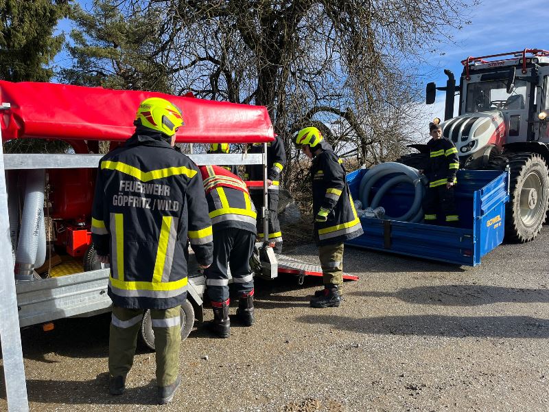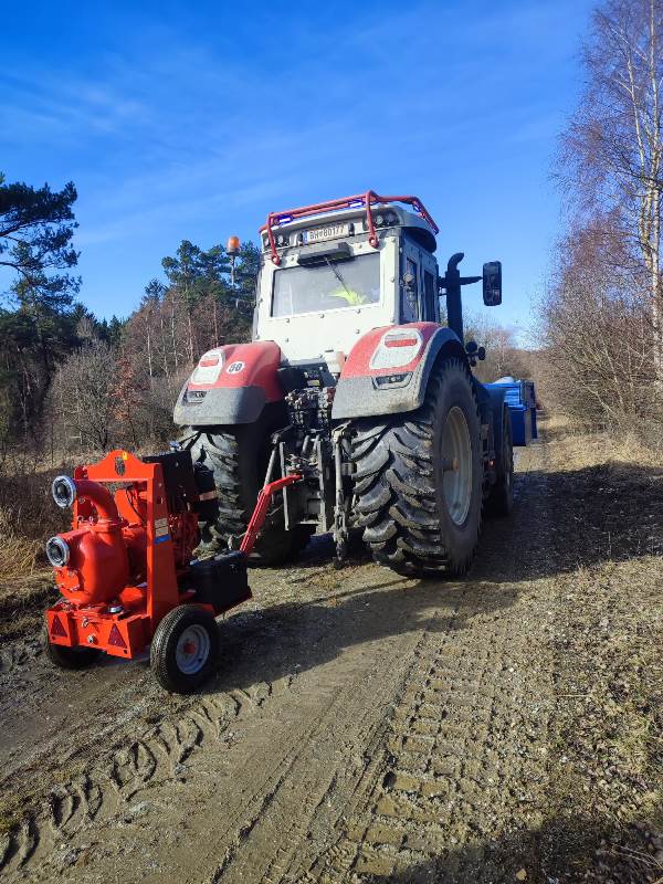 Das LFA mit der SPA wurde ebenso in diesen schwer zugänglichen Bereich entsandt, wobei die Aufgabe darin bestand einen mobilen Löschwassertank zu befüllen und gleichzeitig eine Tragkraftspritze mit Wasser zu versorgen. Um überhaupt in den zugeteilten Bereich zu kommen, mussten die benötigten Geräte auf einen Traktor umgeladen werden. Dieser erstmalige Versuch zeigte in der Praxis große Wirkung und veranschaulichte, das enorme Potential mit einer Sonderpumpenanlage Löschwasser bereitzustellen.
