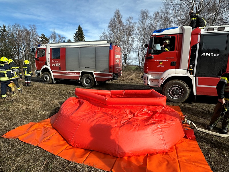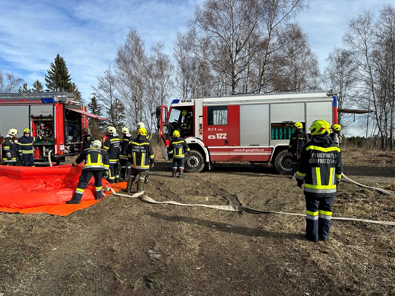 Nach der Alarmierung um 09:06 Uhr durch Florian Zwettl, rückten die Göpfritzer Feuerwehrkräfte mit dem RLFA 2000, LFA mit der SPA, MTF/VF mit dem ALA und mit dem KDOF zum angegebenen Lotsenpunkt am TÜPL aus. Übungsannahme war der Brand eines größeren Waldstückes, wobei es galt mehrere Verteidigungslinien aufzubauen um ein Übergreifen des Feuers zu verhindern.