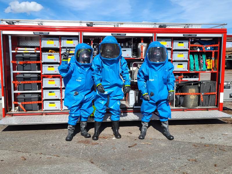 Ziel dieser Übung war es, die Gerätschaften des Schadstoffcontainers kennenzulernen sowie das Arbeiten mit Schutzanzügen der Stufe 3 zu erproben.