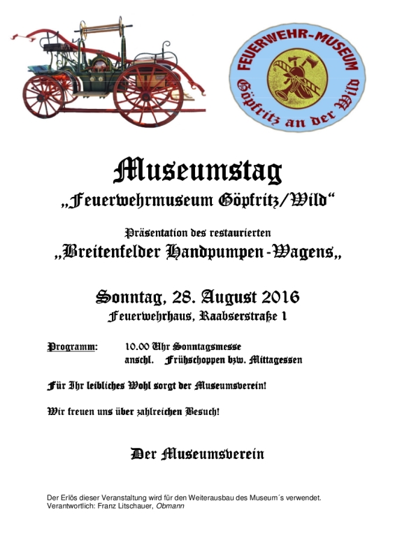 Der Museumsverein Göpfritz an der Wild lädt recht herzlich zum 2. Museumstag am 28. August 2016 ins Feuerwehrhaus in Göpfritz ein.