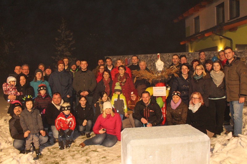 Rund 40 Mitglieder der Feuerwehr Göpfritz/Wild rückten daher besonders erfreut am Abend des 03. Februar zu einem "Einsatz" der besonderen Art aus und überbrachten ihre Glückwünsche symbolisch mit einem Storch, welcher im Garten vor dem Haus aufgestellt wurde.