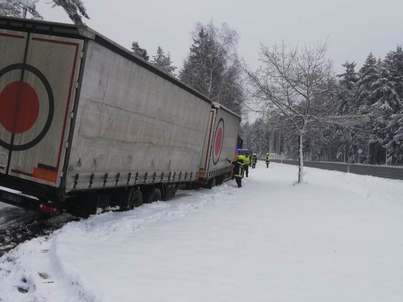 Beim Einfahren in den Begleitweg, der parallel zur LB2 verläuft, blieb ein LKW in den Schneemassen hängen und konnte nicht mehr vor oder zurück fahren.