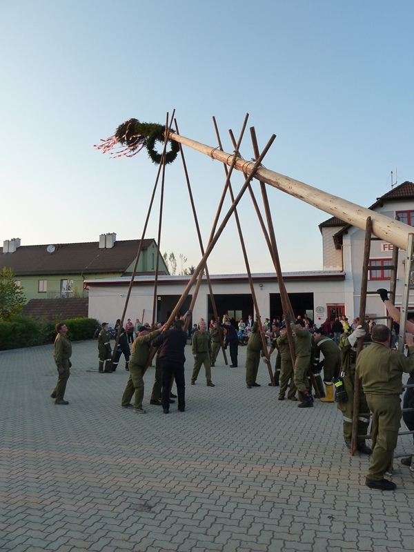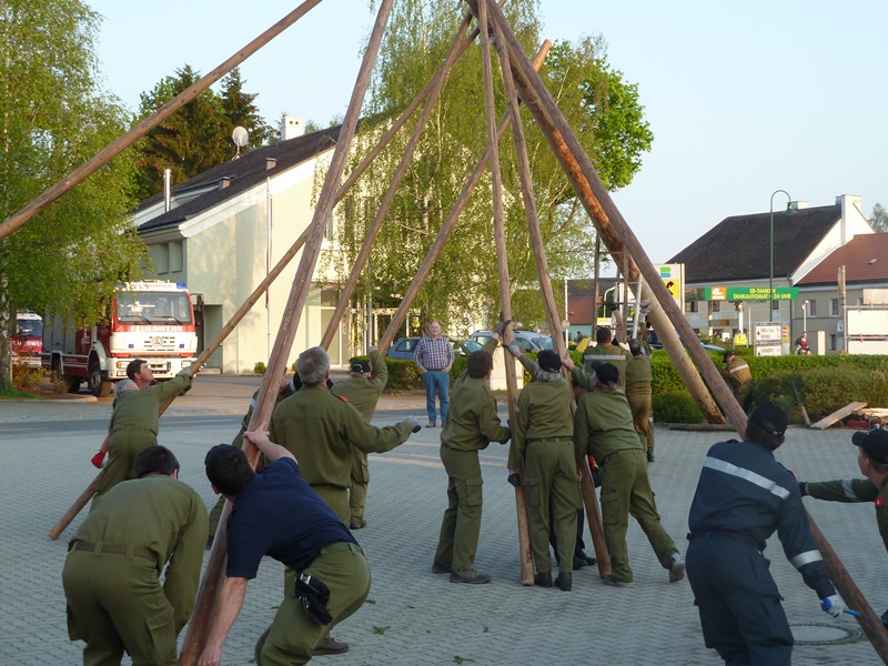 Göpfritz/Wild - Auch heuer folgte man wieder der Tradition des Maibaum aufstellens. So machten sich die Mitglieder der Freiwilligen Feuerwehr Göpfritz/Wild am frühen Abend des 30. April 2014 auf den Weg um den bereits vorbereiteten Maibaum abzuholen und zum Feuerwehrhaus zu überstellen.