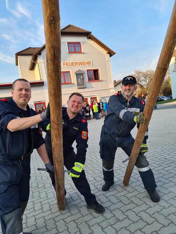 Göpfritz/Wild - Heuer folgte man - nach 2 jähriger pandemiebedingter Pause - wieder der Tradition des Maibaumaufstellens. So machten sich die Mitglieder der Freiwilligen Feuerwehr Göpfritz/Wild am frühen Abend des 30. April 2022 auf den Weg um den bereits vorbereiteten Maibaum abzuholen und zum Feuerwehrhaus zu überstellen.