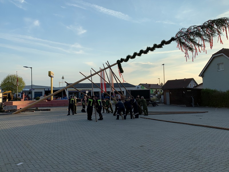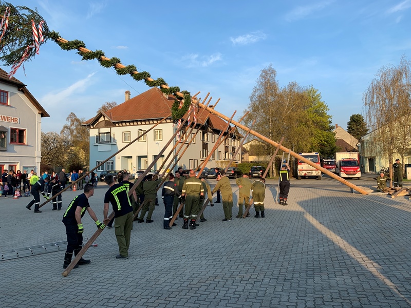 Der Maibaum, welchen dieses Jahr EBI Robert Hofbauer zur Verfügung stellte, wird aus Tradition mit reiner Muskelkraft aufgestellt. Es werden nur "Schwabler" zu Hilfe genommen, außer bei Schlechtwetter (Regen) wird ein Traktor bzw. Bagger zur Unterstützung herangezogen.