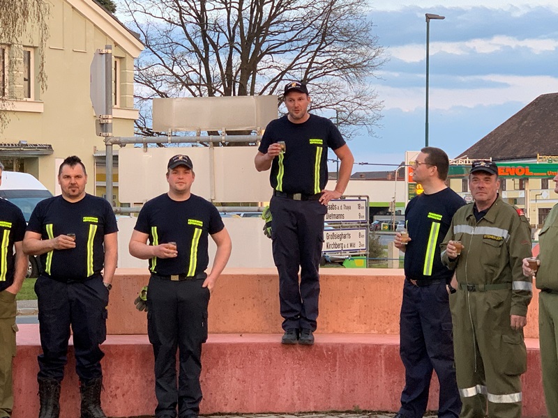 Nach vollbrachter Arbeit bedankte sich Feuerwehrkommandant BR Christian Hübl im Namen des gesamten Kommandos bei den Mitgliedern, allen voran unseren "Maibaumkommandanten" HLM Erwin Neuteufel, welcher sich auch heuer wieder für die Organisation des Maibaumes verantwortlich zeichnete.