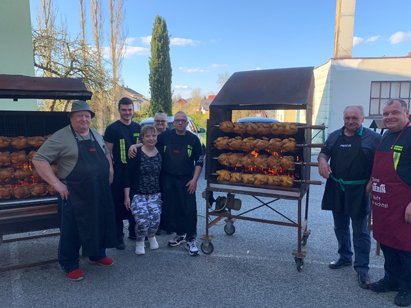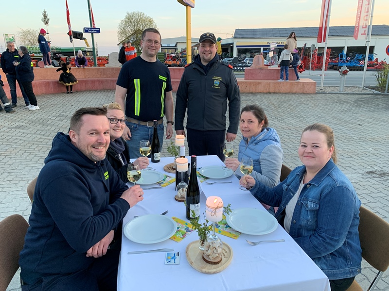 Maibaum 2023Als besondere Gäste, durften wir heuer erstmals die Gewinnerin Anita Weidenauer und ihre Gäste beim exquisiten "Hendl-Light-Dinner" bei uns begrüßen. Beim Frühlingsball unserer Feuerwehr am 22. April 2023 konnte dieser Preis bei der Tombola gewonnen werden. Dabei konnten frisch gegrillte Grillhühner und ausgewählte Weine von der Gewinnerin und ihren Gästen unter dem kurz zu vor aufgestellten Maibaum am "Platz der vergessenen Feuerwehren" genossen werden.
