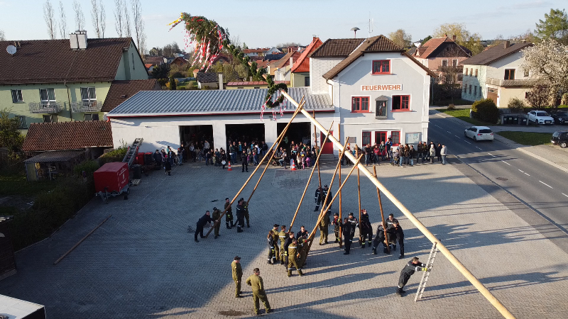 Maibaum 2023Maibaum 2023Der Maibaum, welchen dieses Jahr Frau Inge Schauer zur Verfügung stellte, wird aus Tradition mit reiner Muskelkraft aufgestellt. Es werden nur "Schwabler" zu Hilfe genommen, außer bei Schlechtwetter (Regen) wird ein Traktor bzw. Bagger zur Unterstützung herangezogen.
