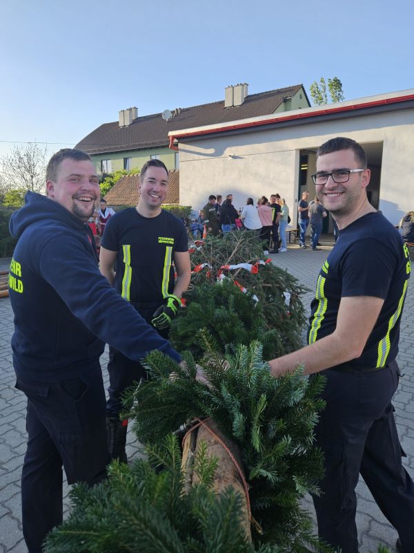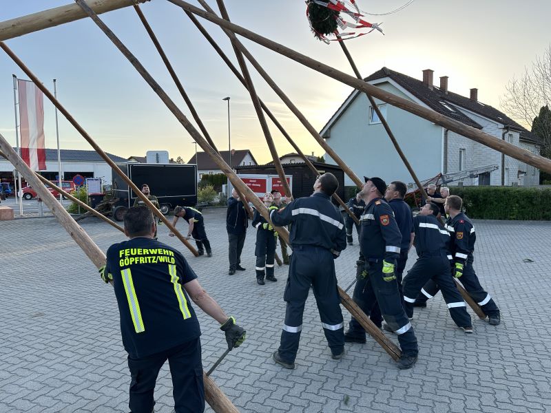 Göpfritz/Wild - Auch heuer folgte man wieder der Tradition des Maibaumaufstellens. So machten sich die Mitglieder der Freiwilligen Feuerwehr Göpfritz/Wild am frühen Abend des 30. April 2024 auf den Weg um den bereits vorbereiteten Maibaum abzuholen und zum Feuerwehrhaus zu überstellen.
