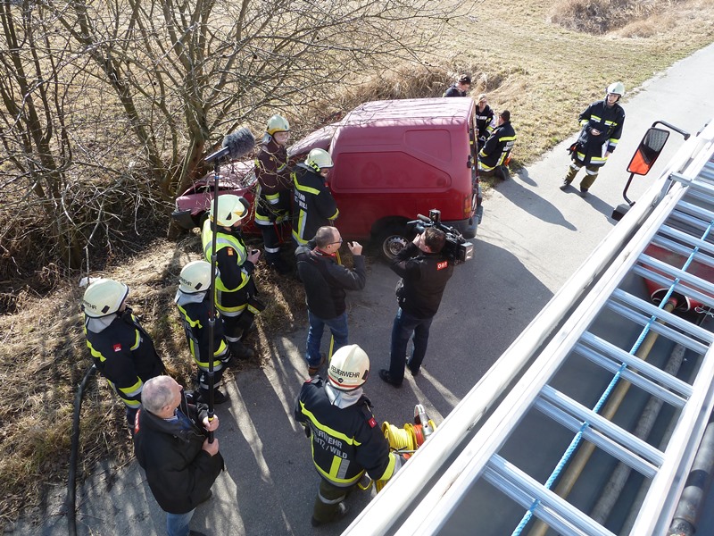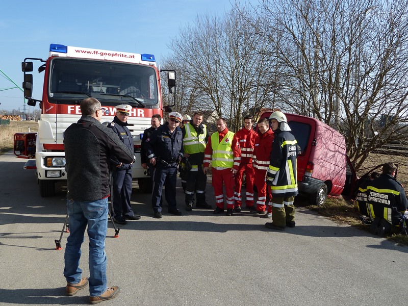 Dreharbeiten mit dem ORFUm die Arbeit, der freiwilligen Mitglieder, zu präsentieren, wurden auf der Übungsstraße (alte LB2 im Bereich Lagerhaus) ein Verkehrsunfall mit zwei verletzten Insassen nachgestellt. Neben der Freiwilligen Feuerwehr Göpfritz/Wild war auch das RK-Allentsteig und die Polizei Schwarzenau bei den Dreharbeiten dabei. Dreharbeiten mit dem ORF