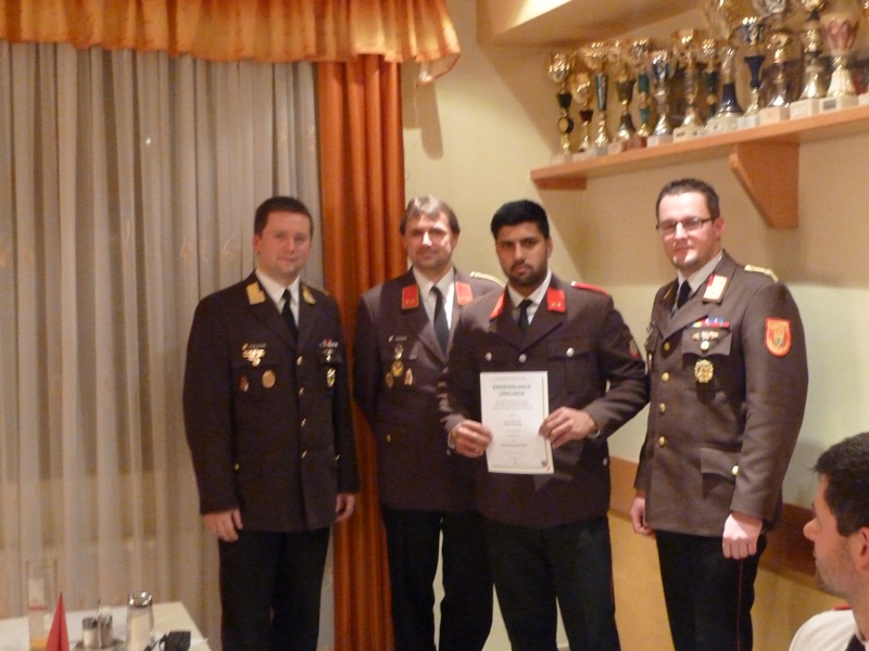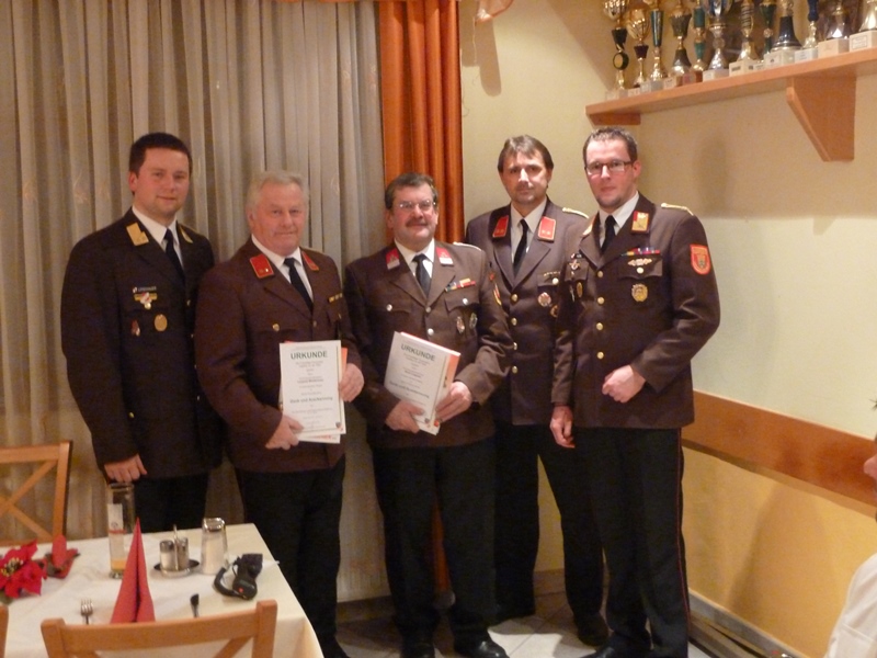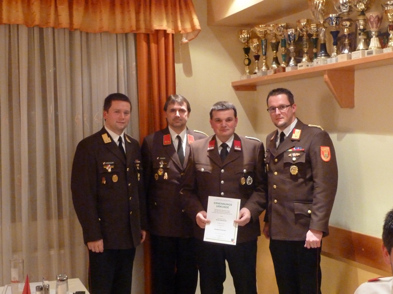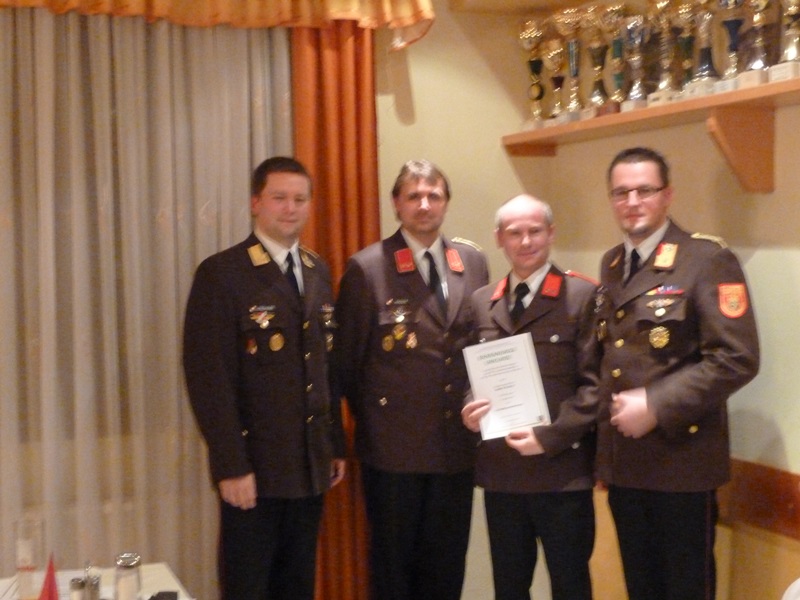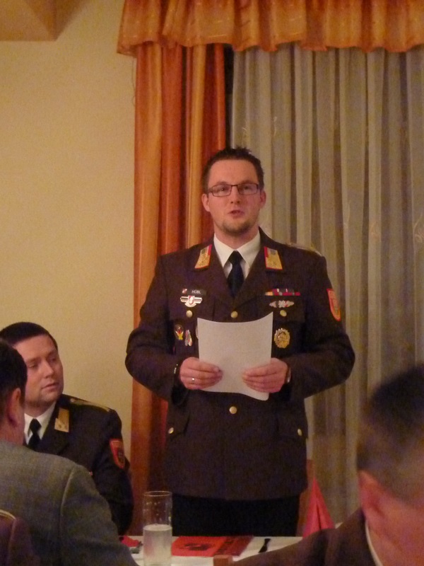 Im Anschluss an die Berichte der Fachchargen und Sachbearbeiter - LM Ronny Kuschal (Atemschutz), HBM Christian Wopienka (Ausbildung), SB Christoph Litschauer (Fahrmeister), EOV Gerhard Schneider (Feuerwehrgeschichte) und OBM Karl Mödlagl (Zeugmeister) - beendete Feuerwehrkommandant ABI Christian Hübl die Sitzung mit "Gut Wehr" und lud im Namen der Feuerwehr die anwesenden Mitglieder noch zu einem gemeinsamen Abendessen ein.