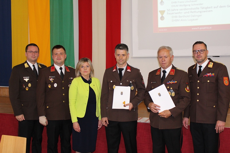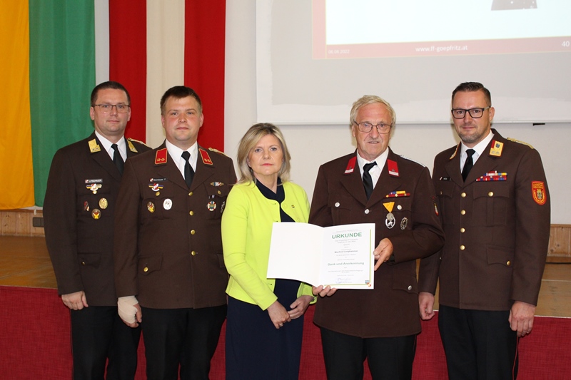 Feuerwehrkommandant BR Ing. Christian Hübl konnte als Gast die Bürgermeisterin der Marktgemeinde Göpfritz an der Wild, Silvia Riedl-Weixlbraun, sowie stellvertretend für alle anwesenden Ehrendienstgrade, EHBI Franz Litschauer und EHBI Berthold Dalinger recht herzlich begrüßen.