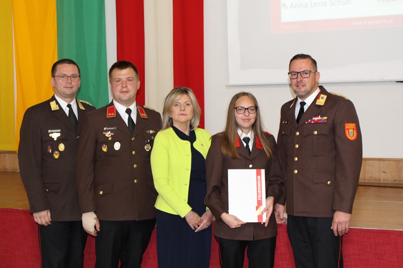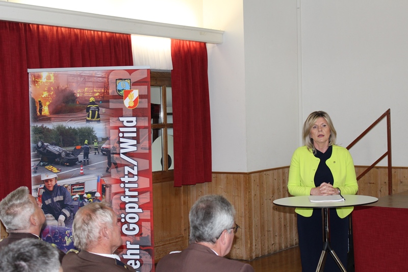 Auch die Bürgermeisterin der Marktgemeinde Göpfritz an der Wild, Silvia Riedl-Weixlbraun, zeigte sich beeindruckt von den vielen Aktivitäten der Feuerwehr Göpfritz, seien es schwierige Einsätze, Übungen oder Veranstaltungen zur Mittelbeschaffung. Sie bedankte sich in ihren Worten unteranderem auch für die stete Zuverlässigkeit der Freiwilligen Feuerwehr GöpfritzWild bzw. deren Mitglieder und strich besonders den Stellenwert unserer Feuerwehr als wichtigen Partner der Marktgemeinde Göpfritz heraus.