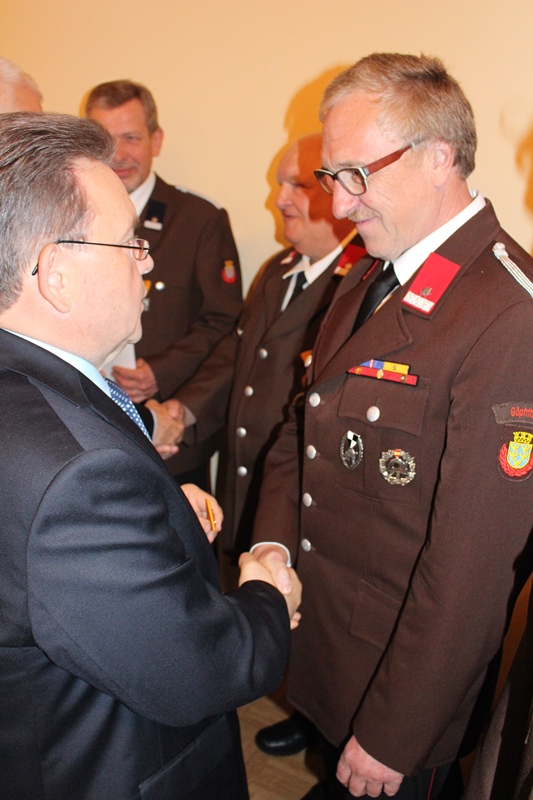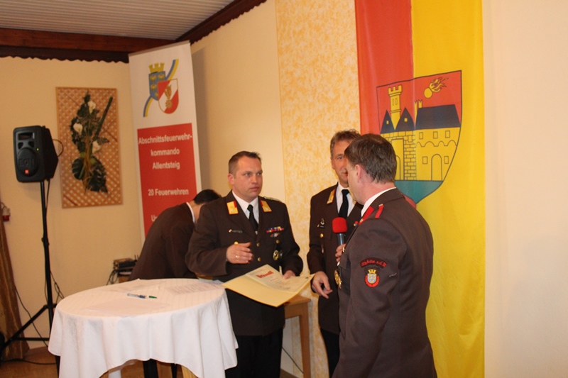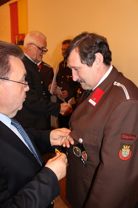 LAbg. Franz Mold überreichte in Vertretung von Landeshauptmann Dr. Erwin Pröll sowie im Beisein von Bezirkshauptmann Dr. Michael Wiedermann sowie ranghohen Feuerwehrfunktionären wie LFR Erich Dangl und Bezirksfeuerwehrkommandant OBR Franz Knapp, Auszeichnungen des Landes Niederösterreichs für 50, 40 und 25 Jahre verdienstvolle Tätigkeit auf dem Gebiete des Feuerwehr- und Rettungswesens.