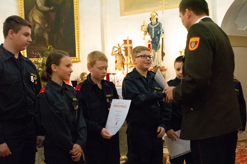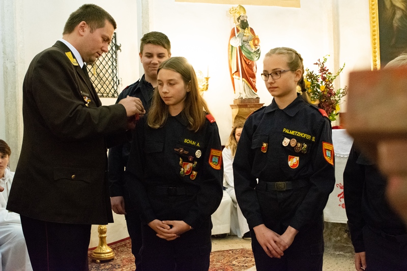 Im Rahmen der Florianimesse wurde den Feuerwehrjugendmitgliedern, welche im Februar die Erprobung erfolgreich absolviert haben, das Erprobungsspielabzeichen bzw. auch die neuen Dienstgrade mit den Erprobungsstreifen verliehen. Zum Bericht der Erprobung