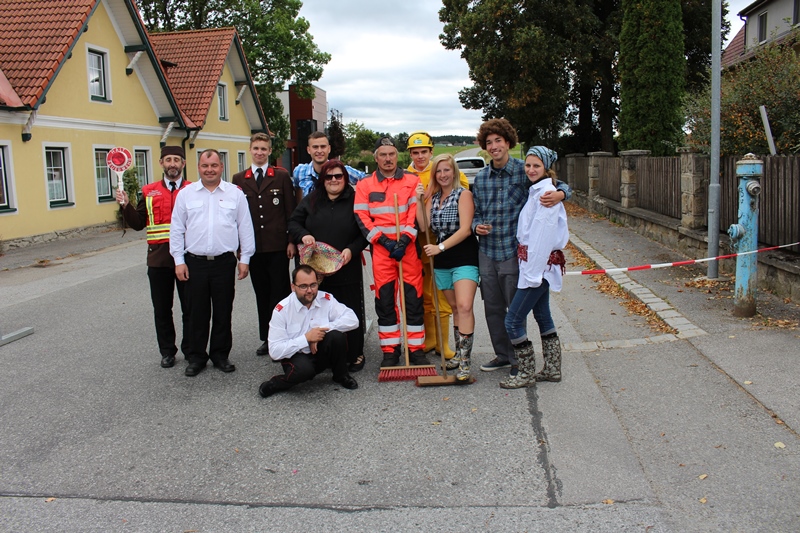 Am Weg, der Hochzeitgesellschaft, in das Gasthaus Klang nach Echsenbach wurde von den Feuerwehrmitgliedern gemeinsam mit dem Sportverein Göpfritz traditionell abgesperrt. Hier musste das Brautpaar verschiedene Herausforderungen meistern bevor es seinen Weg fortsetzten konnte.![]()