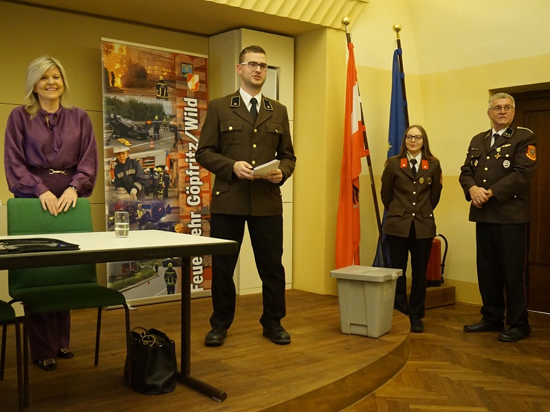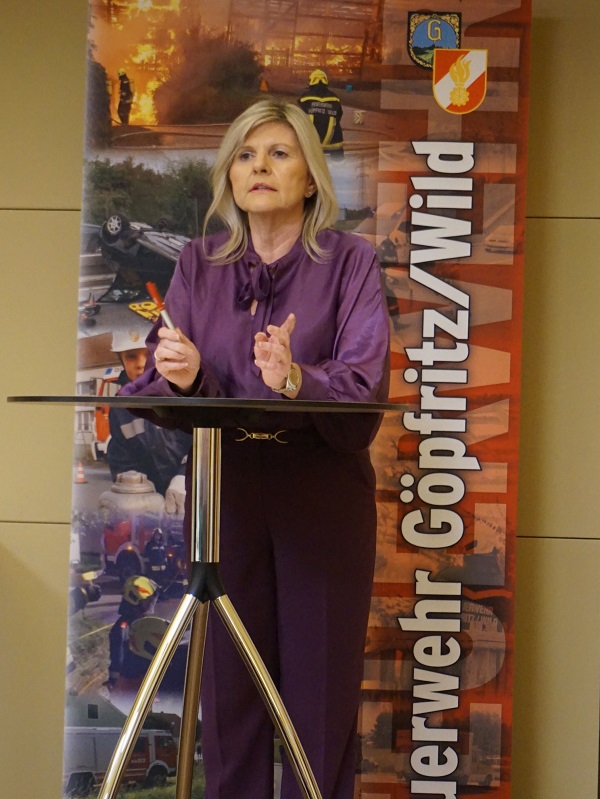 Im Anschluss an die Ernennungen und Beförderungen durch HBI Stefan Gutmann dankte auch Bürgermeisterin Silvia Riedl-Weixlbraun den Mitgliedern der Freiwilligen Feuerwehr Göpfritz/Wild für ihr Engagement und die tatkräftige Unterstützung und wünschte dem neuen Feuerwehrkommando alles Gute für ihre künftigen Aufgaben.