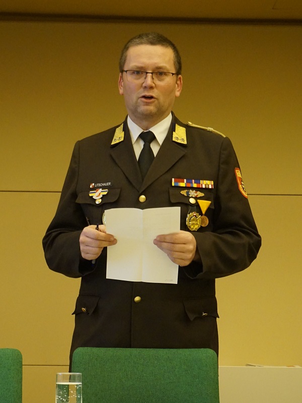Nach der Annahme der Wahl und der Angelobung durch die Bürgermeisterin, übernahm der neu gewählte Feuerwehrkommandant HBI Stefan Gutmann den Vorsitz der Mitgliederversammlung.