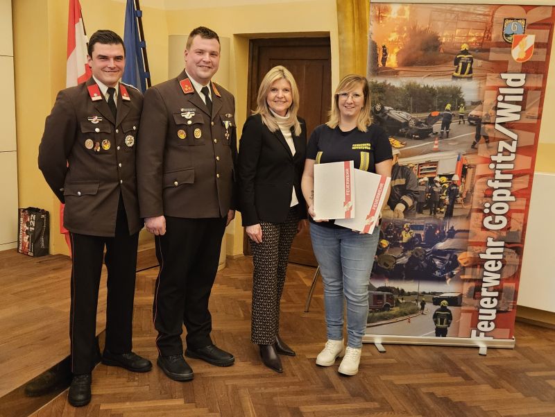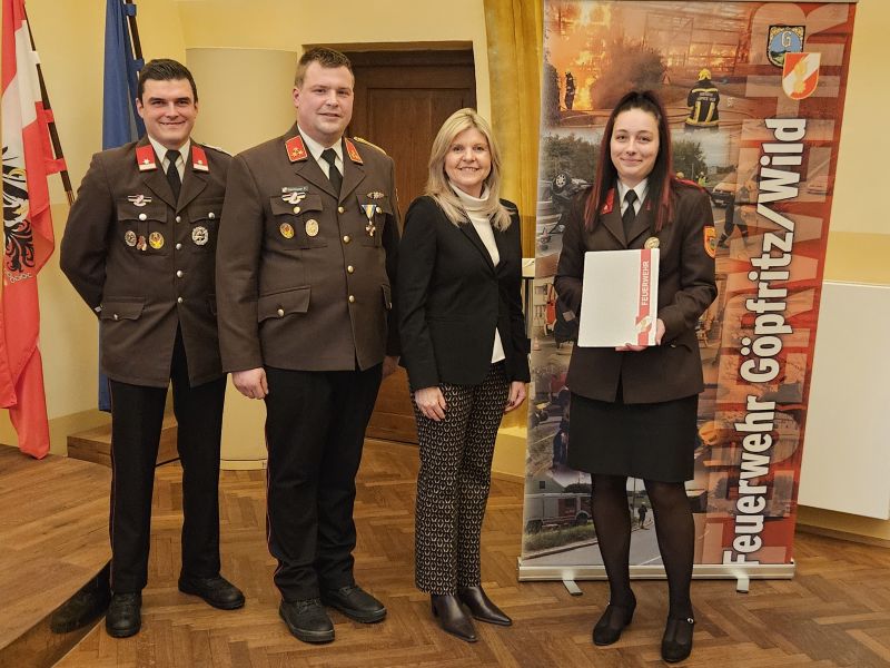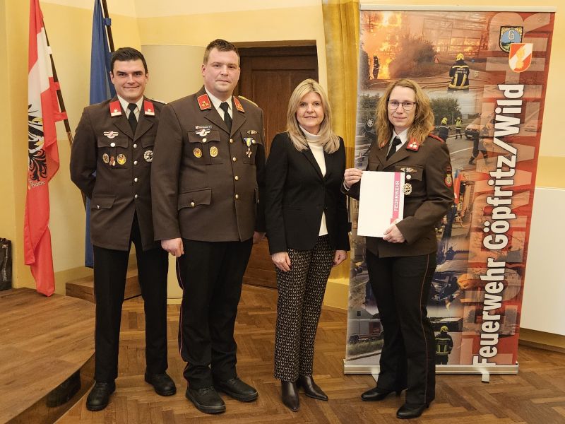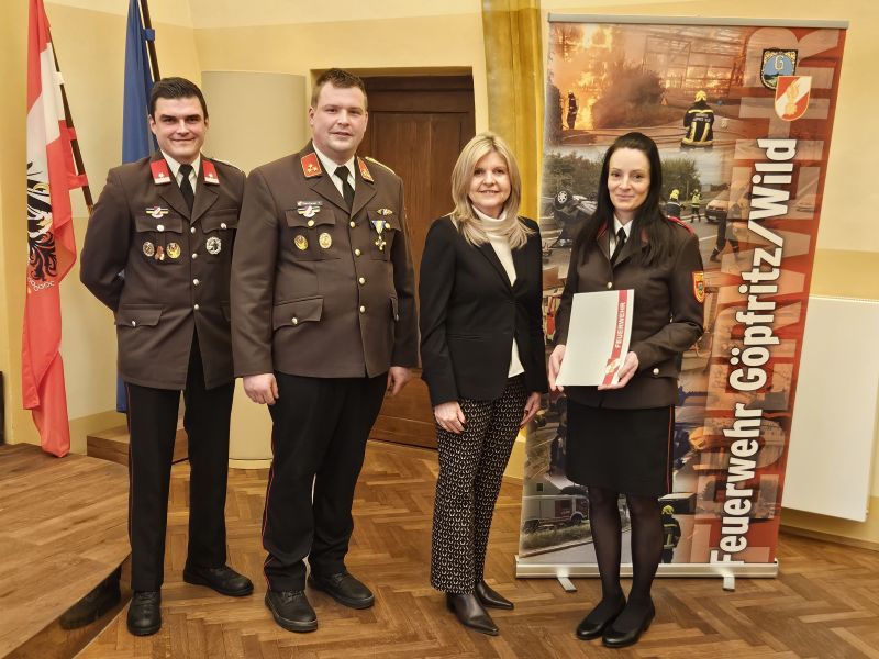 Im Anschluss an die Ernennungen und Beförderungen durch HBI Franz Steinbauer dankte auch Bürgermeisterin Silvia Riedl-Weixlbraun den Mitgliedern der Freiwilligen Feuerwehr Göpfritz/Wild für ihr Engagement und die tatkräftige Unterstützung und wünschte dem neuen Feuerwehrkommando alles Gute für ihre künftigen Aufgaben.