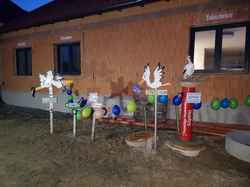 Aus diesem Grund rückten die Mitglieder der Feuerwehr Göpfritz/Wild besonders erfreut am Abend des 21. Februar 2020 zu einem "Einsatz" der besonderen Art aus und überbrachten ihre Glückwünsche symbolisch mit einem Storch, welcher im Garten vor dem Haus aufgestellt wurde.