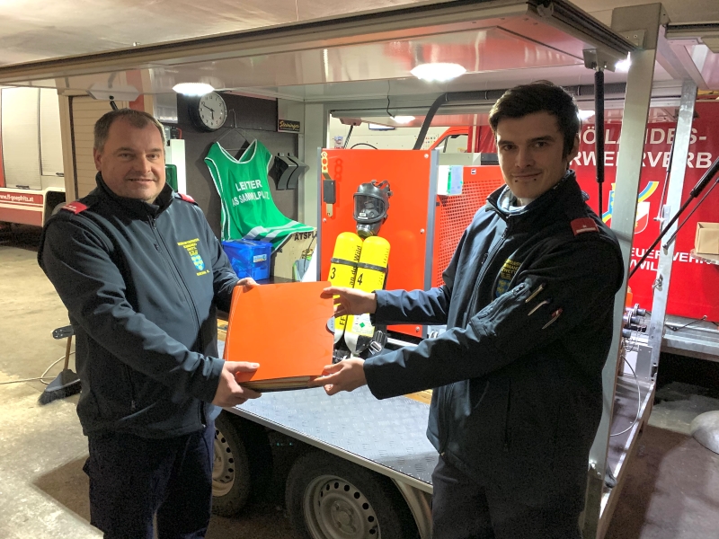 Übergabe im Sachgebiet AtemschutzGöpfritz/Wild - Gruppenkommandant OLM Ronny Kuschal (seit Jänner 2007 Sachbearbeiter Atemschutz) übergab im Jänner 2021 seine Agenden als Sachbearbeiter Atemschutz an seinen Nachfolger LM Michael Gutmann.