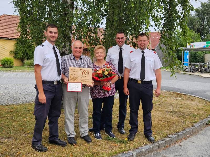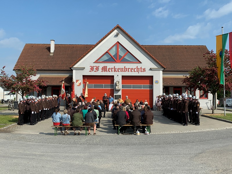 Merkenbrechts - Am 4. Juni 2023 feierten 53 Mitglieder der Feuerwehren der Pfarren Göpfritz/Wild und Kirchberg (Almosen, Breitenfeld, Göpfritz/Wild, Kirchberg, Merkenbrechts und Schönfeld), bereits zum fünften Mal, gemeinsam die Floriani-Messe, welche von Prior Mag. Andreas Brandtner vor dem Feuerwehrhaus Merkenbrechts abgehalten wurde. OBI Ewald Dangl konnte dabei Bürgermeisterin Silvia Riedl-Weixlbraun, Vizebürgermeister Dir. Werner Scheidl sowie VR Ewald Litschauer und BR Sigi Ganser begrüßen.